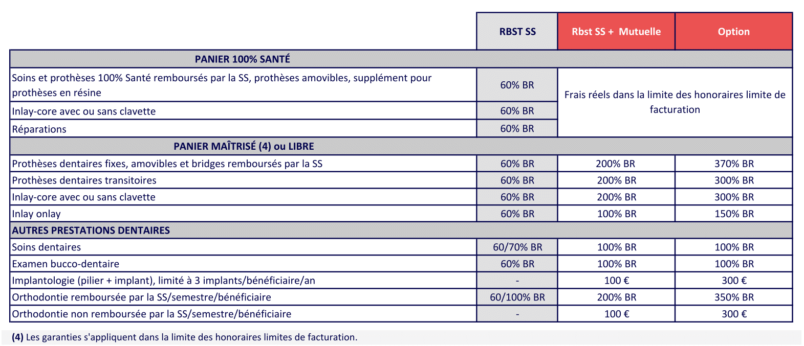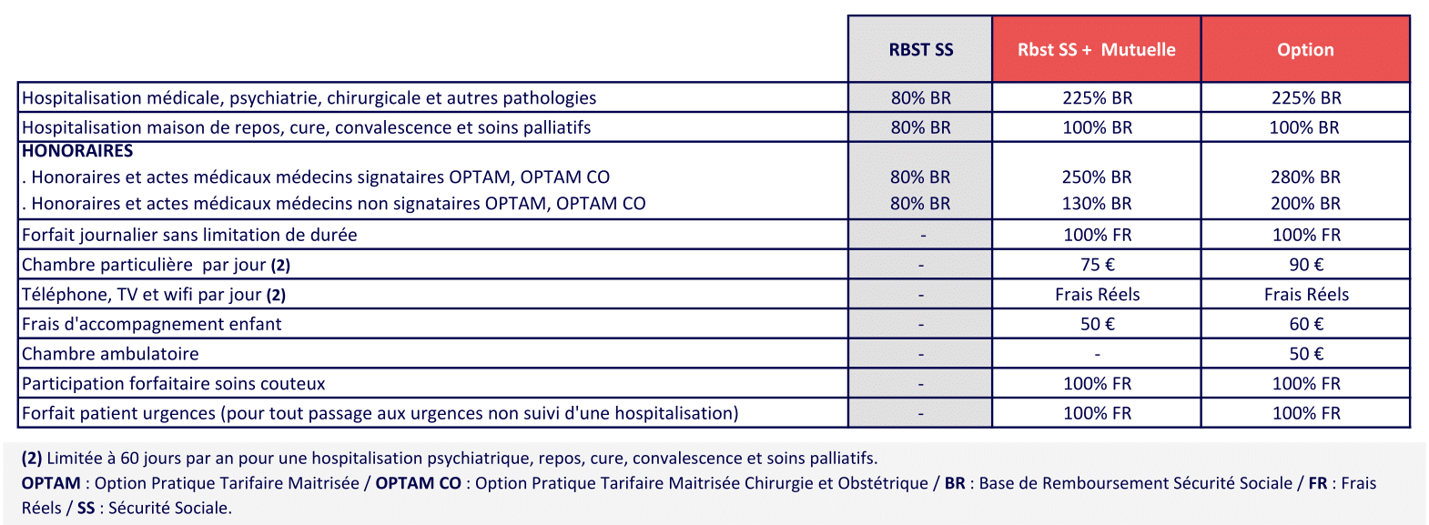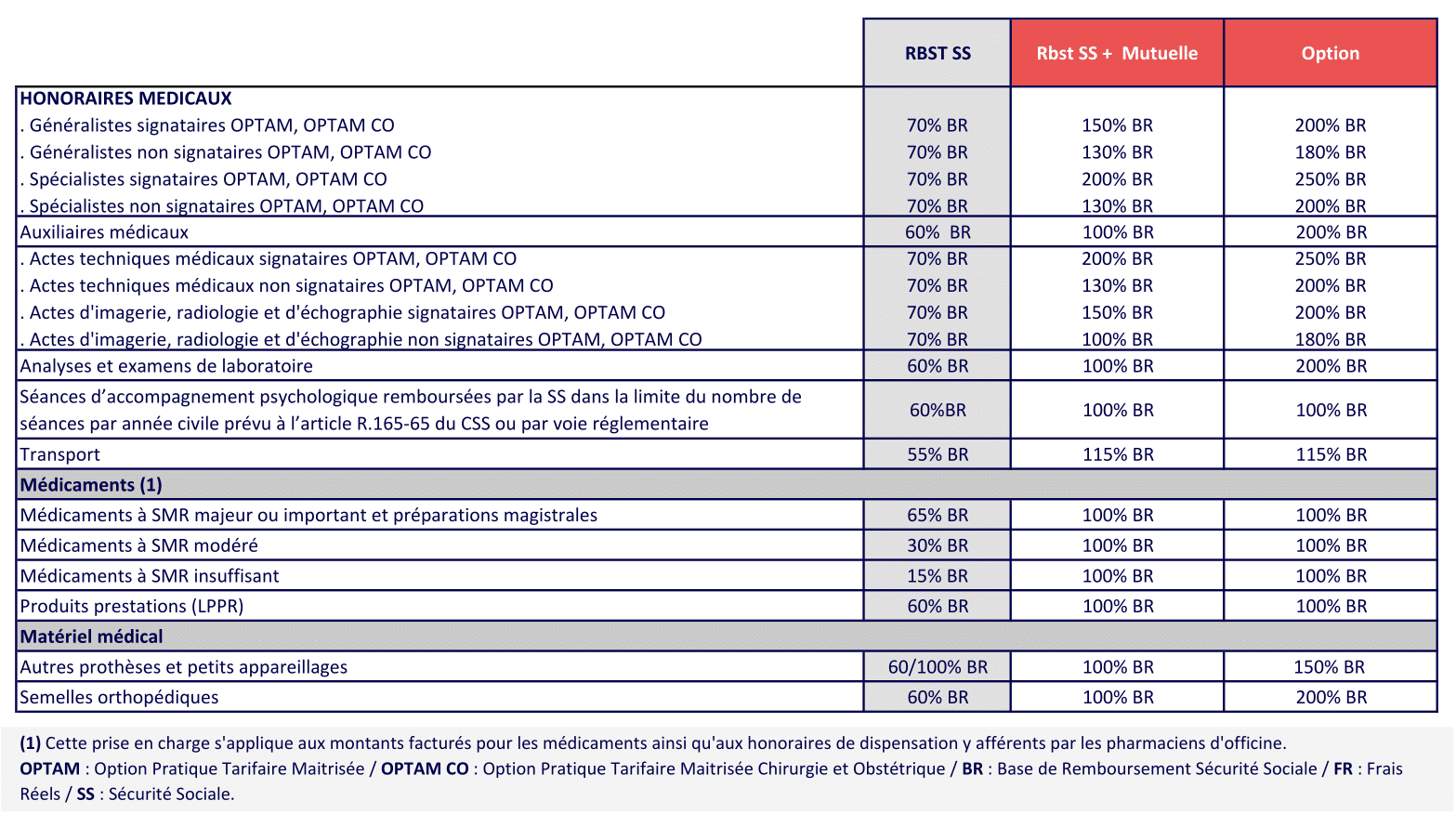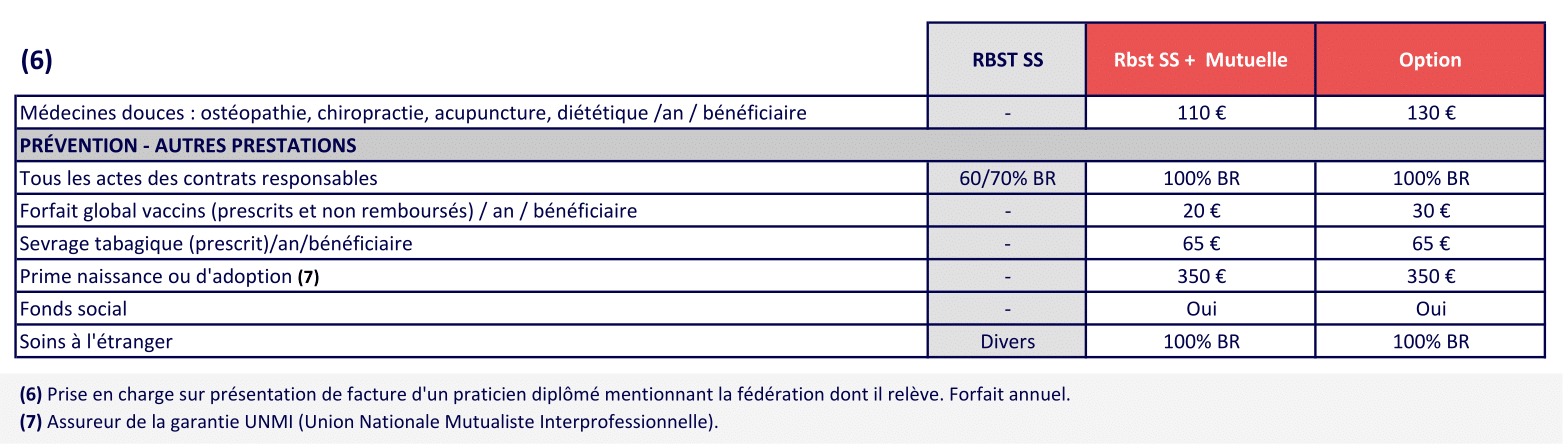 Les garanties couvrent l’hospitalisation, les soins médicaux du quotidien, l’optique, le dentaire et les aides auditives. Des prestations de prévention sont également intégrées dans la mutuelle obligatoire relative au transport routier.