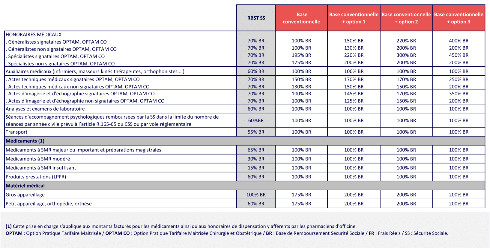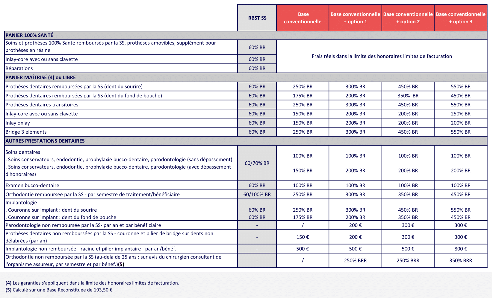 - Dentaire : au moins 125 % BRSS sur les prothèses et l’orthodontie