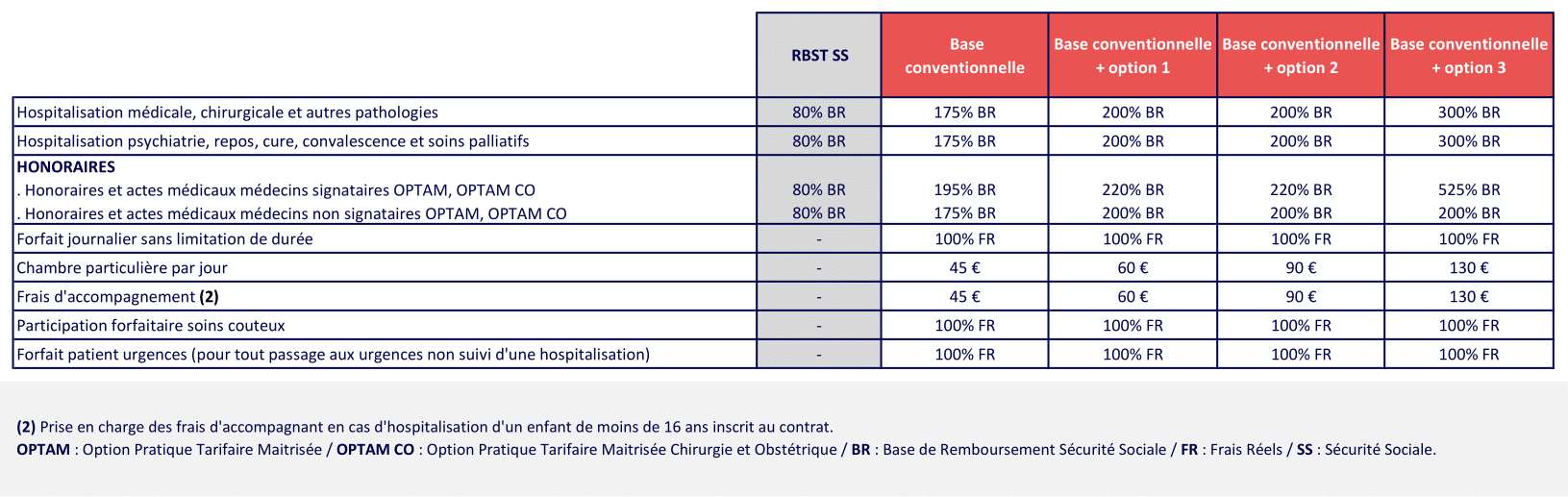 Certains employeurs choisissent des garanties supérieures pour un meilleur confort (chambre individuelle, TV, etc.).