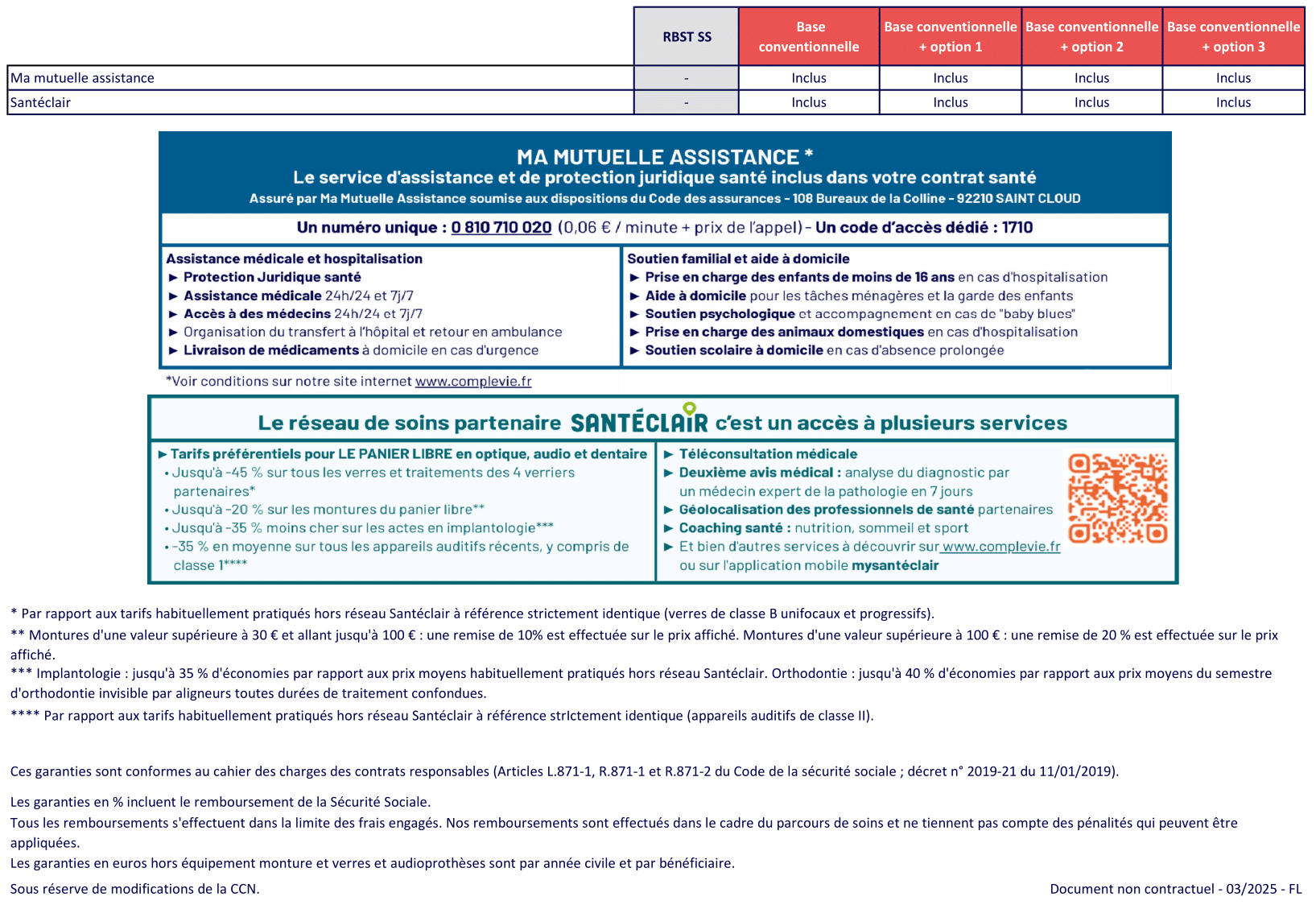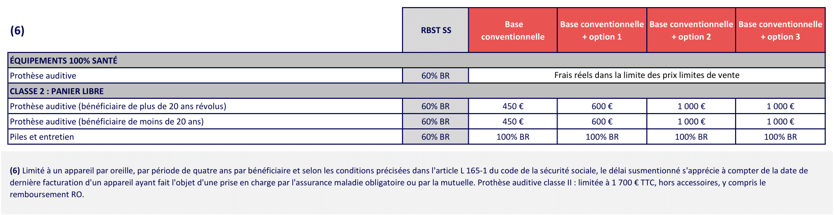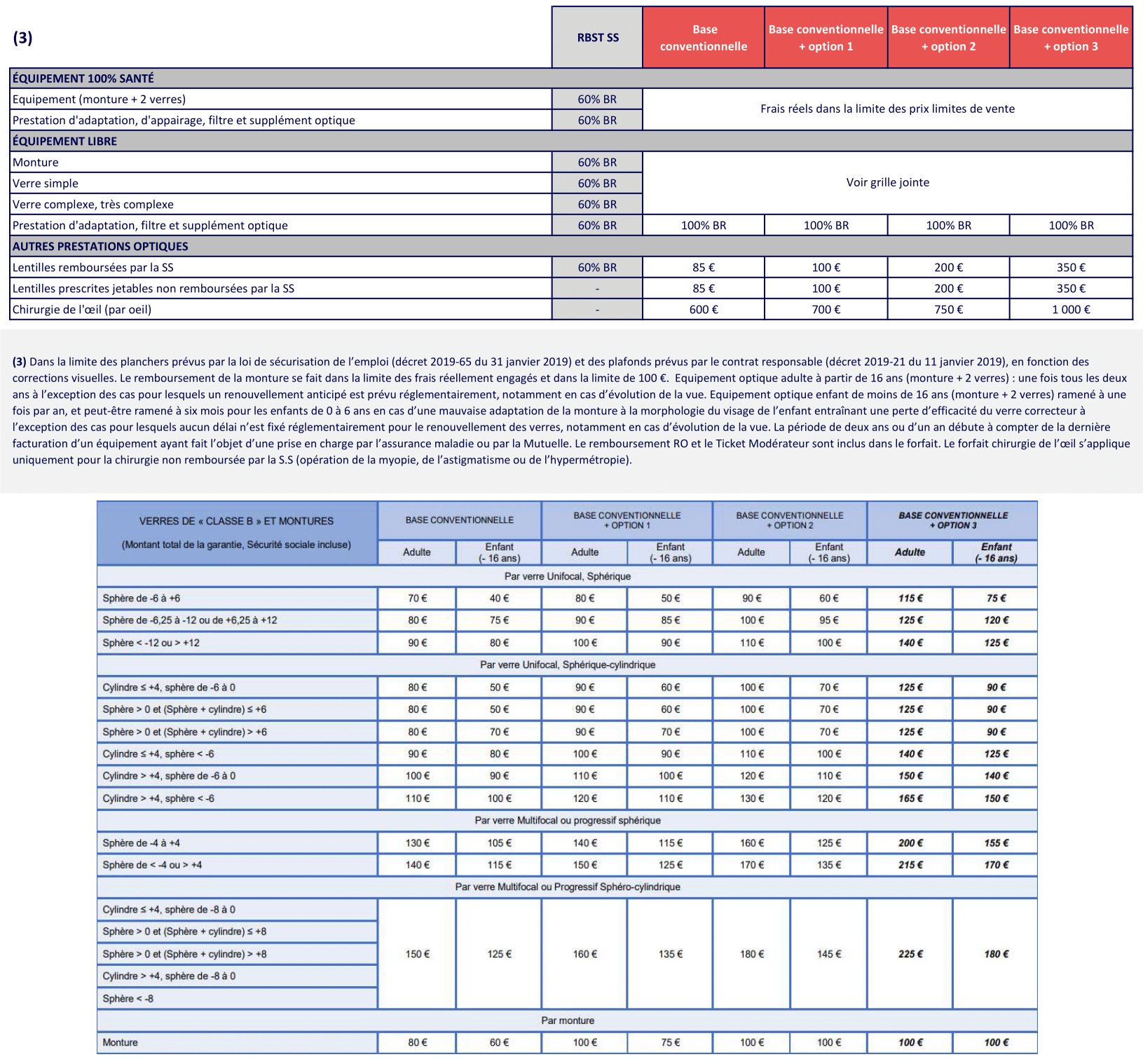 - Optique : respect du panier 100% Santé + forfait possible pour les équipements hors panier