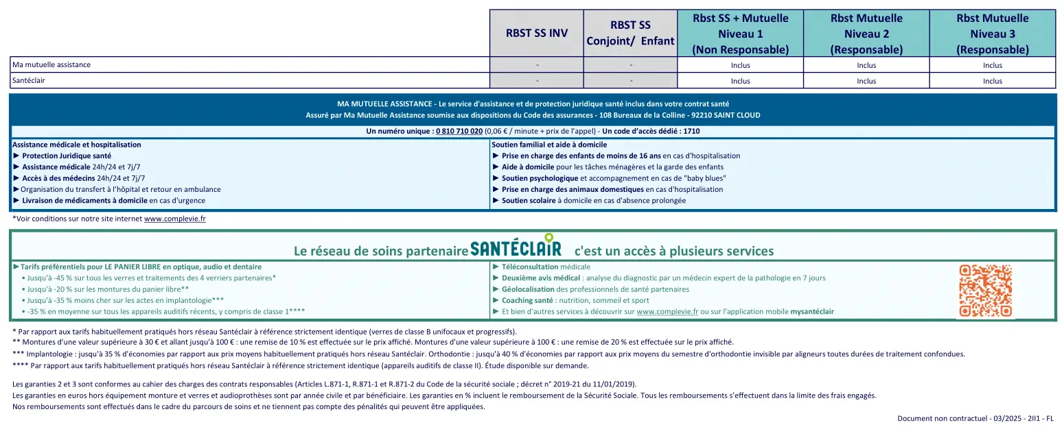 Elle inclut aussi l’accès au réseau Santéclair, pour bénéficier de tarifs négociés et d’une qualité de soin reconnue.